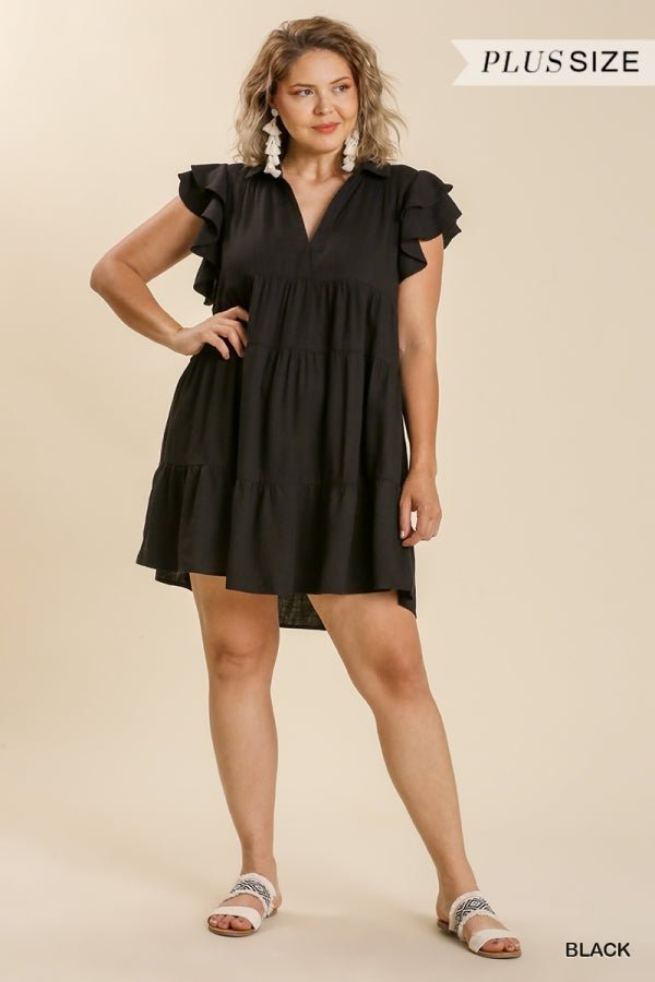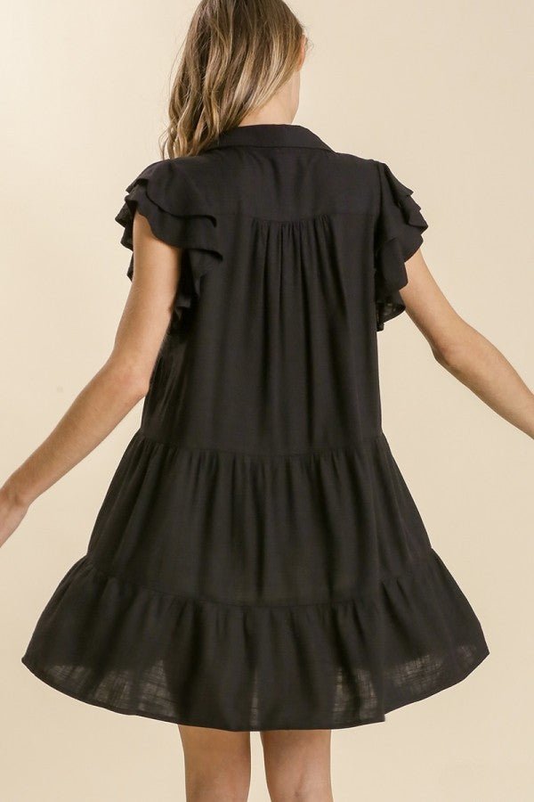 Home Dresses Umgee Black Linen Blend Tiered Dress with Ruffled Sleeves